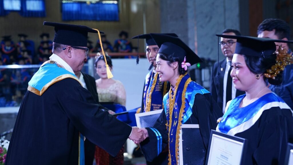 Singaraja – Universitas Pendidikan Ganesha (Undiksha) kembali menorehkan kebanggaan melalui pelaksanaan Wisuda ke-78 yang berlangsung pada Jumat (5/12/2025). Dalam upacara yang digelar dengan penuh khidmat, Rektor Undiksha, Prof. Dr. I Wayan Lasmawan, M.Pd., secara resmi mempersembahkan 1.163 lulusan dari berbagai fakultas dan Program Pascasarjana. Para lulusan tersebut mencakup jenjang D3, D4, S1, S2, dan S3, termasuk tiga mahasiswa asing dari Program S2 Ilmu Manajemen yang menambah nuansa internasional pada perayaan akademik ini.